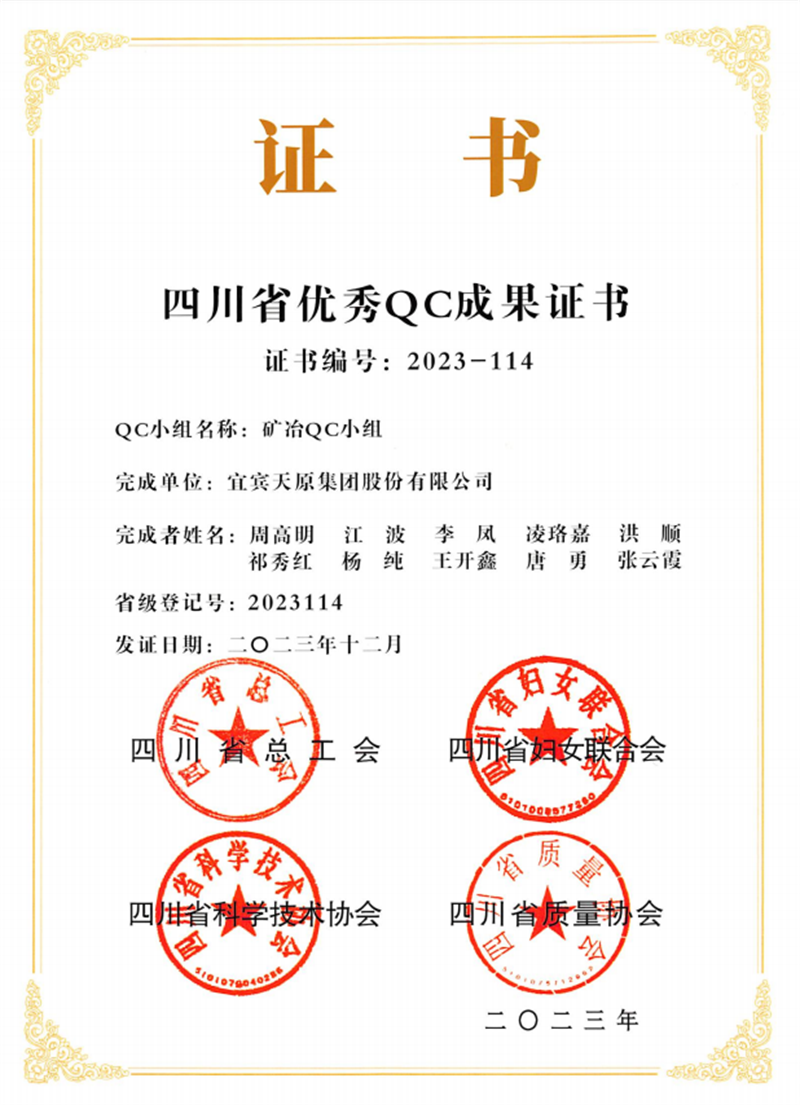 矿冶QC小组“磷尾矿资源化利用技术的研究”荣获四川省优秀质量治理小组运动奖