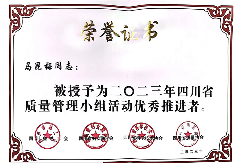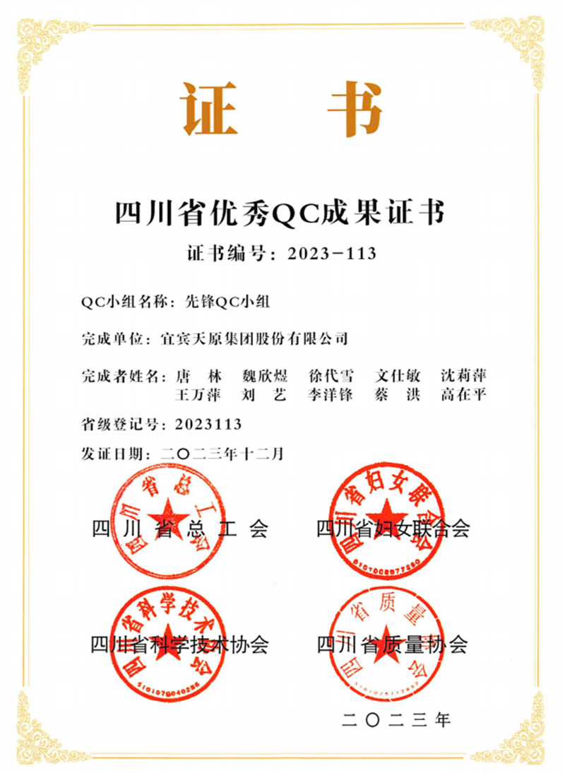 先锋QC小组“PVC力化学助剂的研制”荣获四川省优秀质量治理小组运动奖