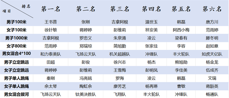 本次运动会设有男子100米、女子100米、男子1000米、女子800米、男女混淆4*100米、男子立定跳远、女子立定跳远、男子单人跳绳、女子单人跳绳、男女混淆拔河10个角逐项目,既有考验团队协作能力的集体项目,也有展现个人风范的单项角逐,充分调动了员工们的加入热情。